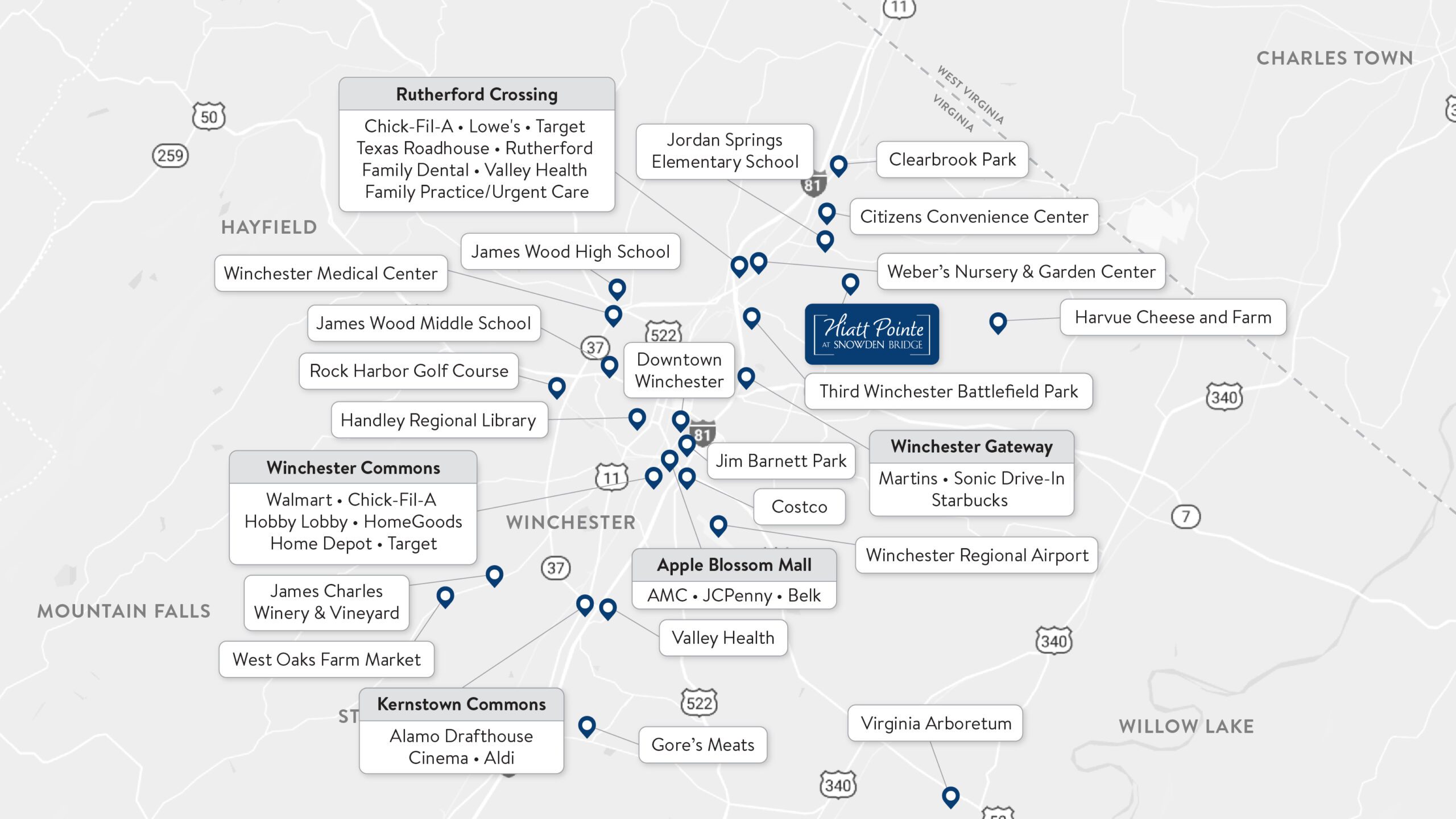 Located just minutes from historic Downtown Winchester, Hiatt Pointe is surrounded by the beauty of the Shenandoah Valley and offers convenient access to major commuter routes, popular shopping centers, and Frederick County schools.